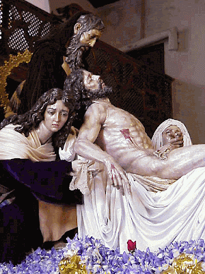 Servitas: en las esquinas del paso de La Piedad, las tallas de los profetas Isaías, Daniel, Jeremías y Ezequiel junto con cuatro ángeles mancebos.